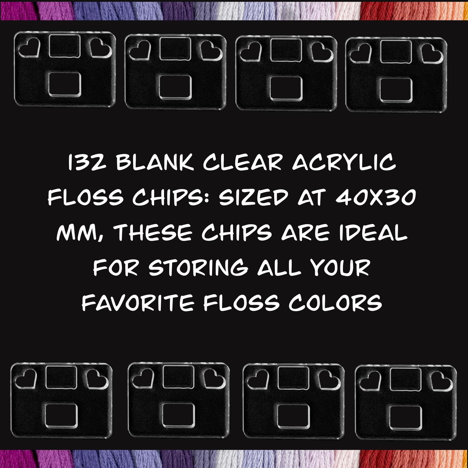 🎁 132 Blank Clear Acrylic Floss Chips: Sized at 40x30 mm, these chips are ideal for storing all your favorite floss colors.