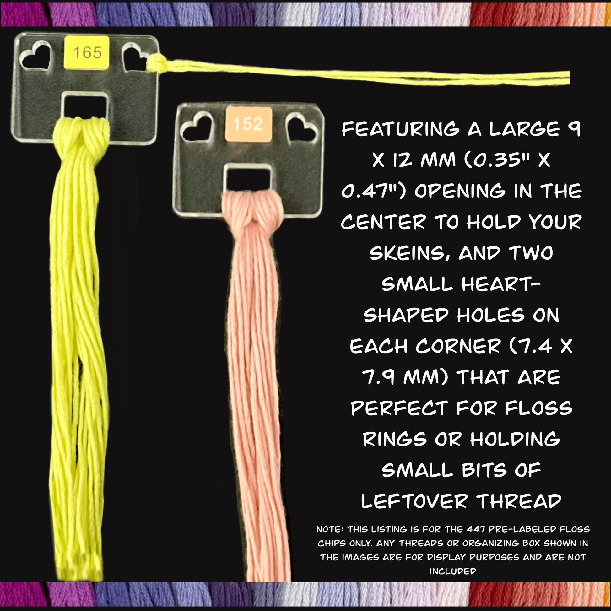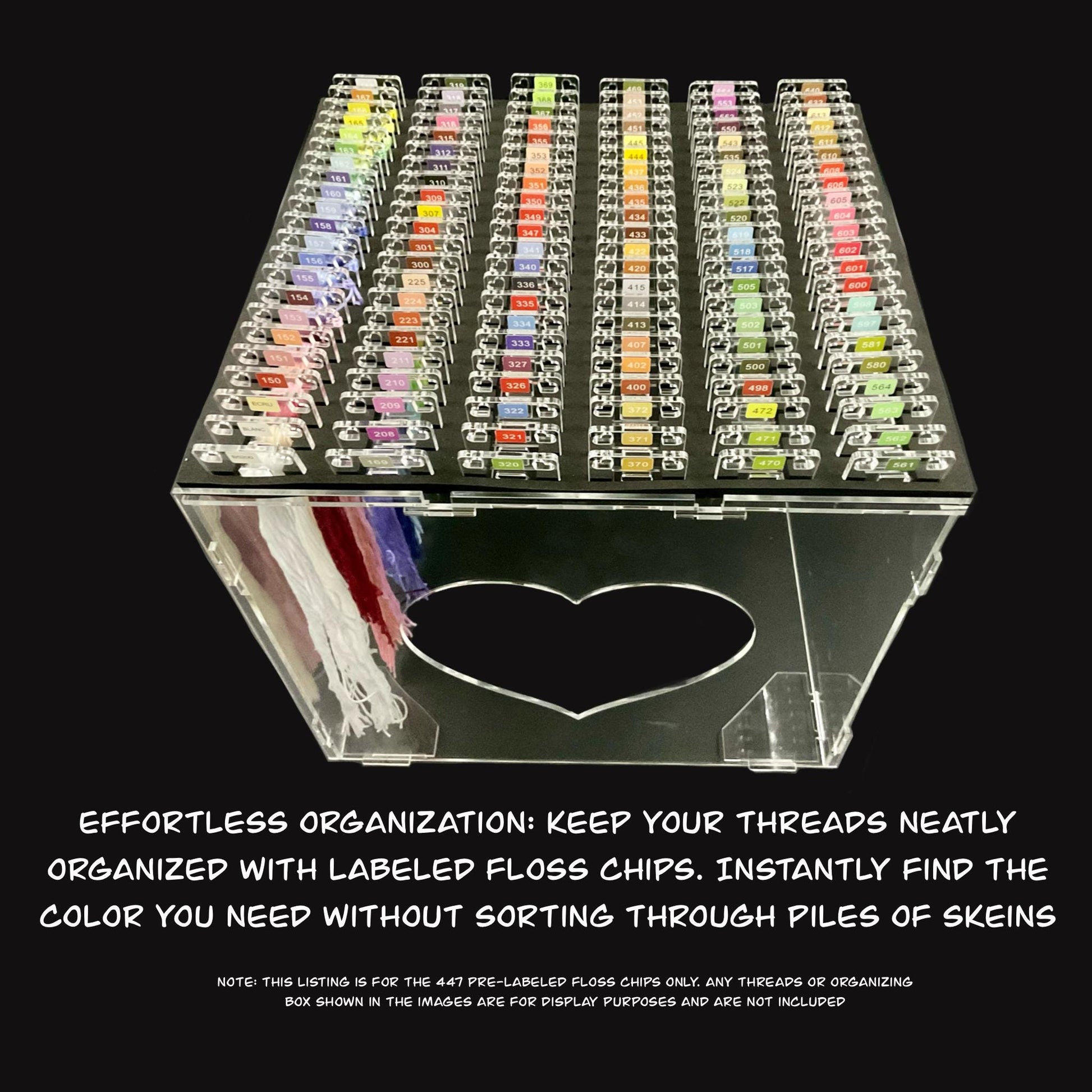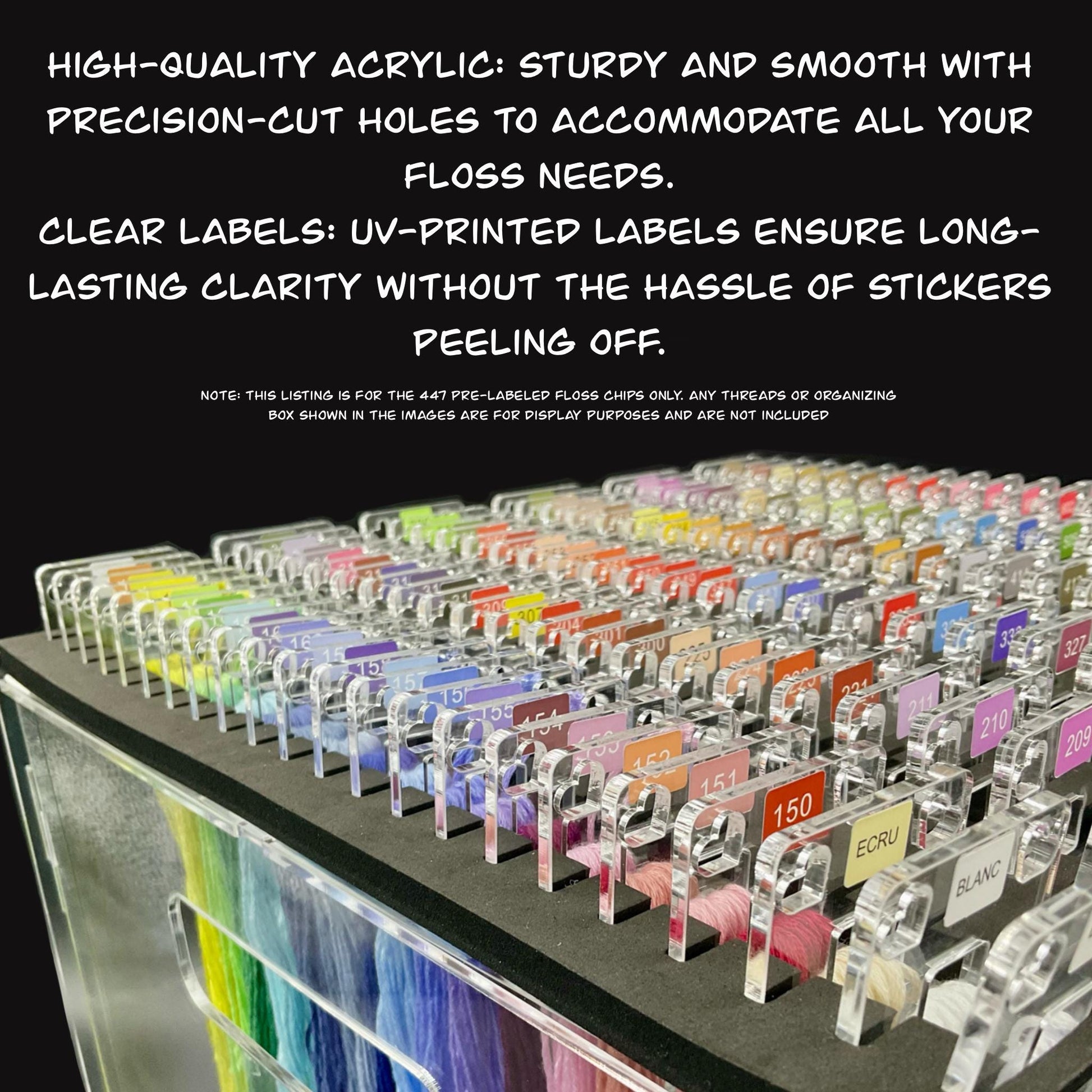-447 Pre-Labeled Acrylic Chips: Each chip comes with the DMC number clearly labeled on top of the large opening for easy identification. No more hunting for your colors!