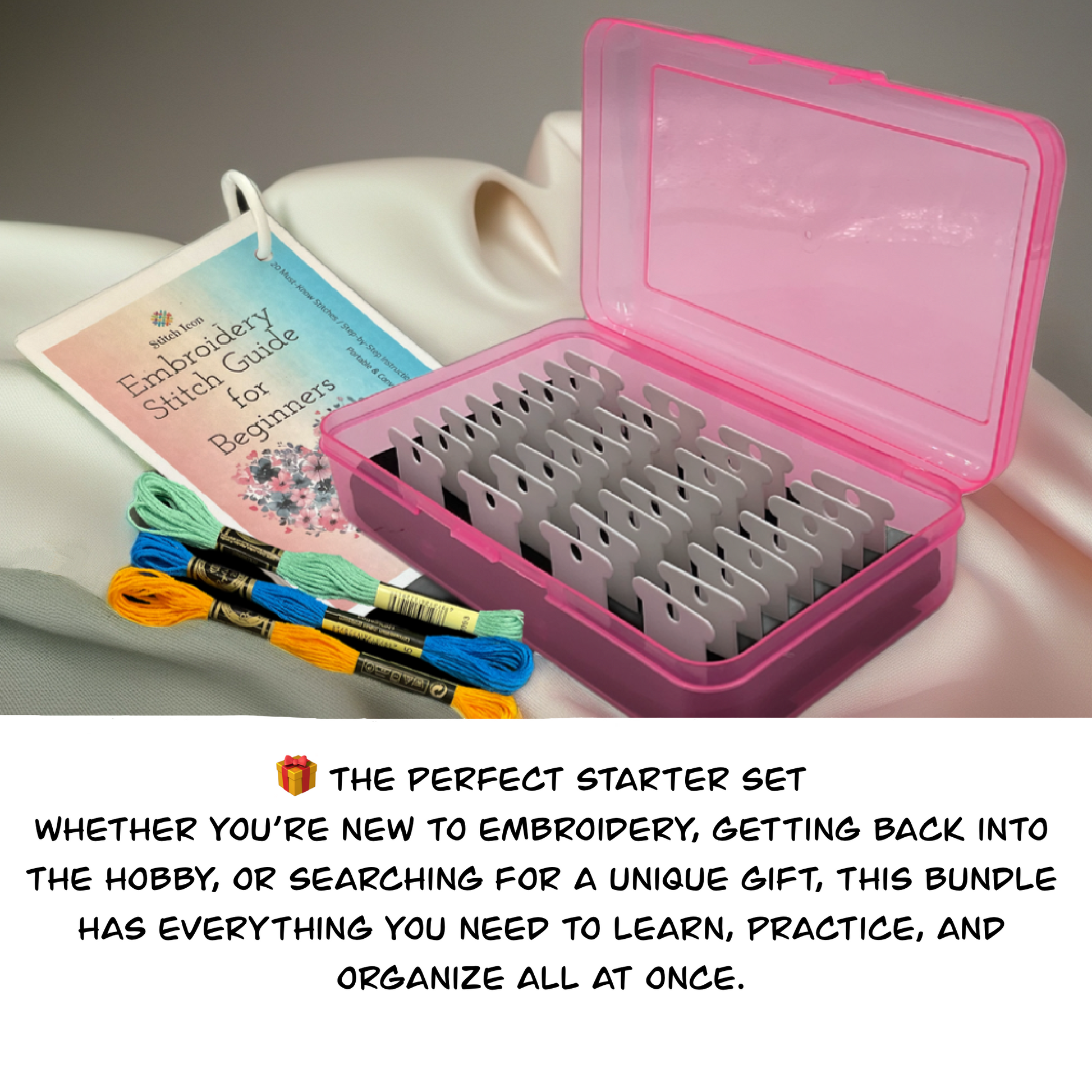 Whether you’re new to embroidery, getting back into the hobby, or searching for a unique gift, this bundle has everything you need to learn, practice, and organize all at once.