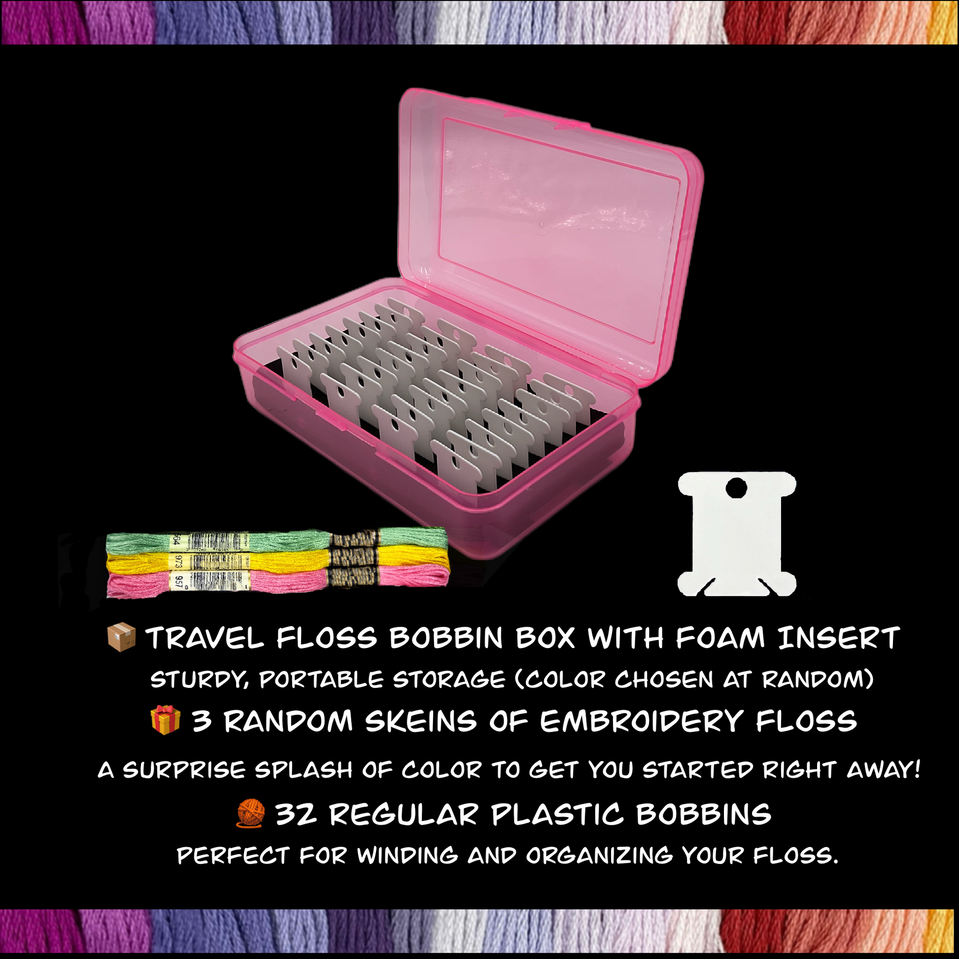 🧶 32 Regular Plastic Bobbins – perfect for winding and organizing your floss.