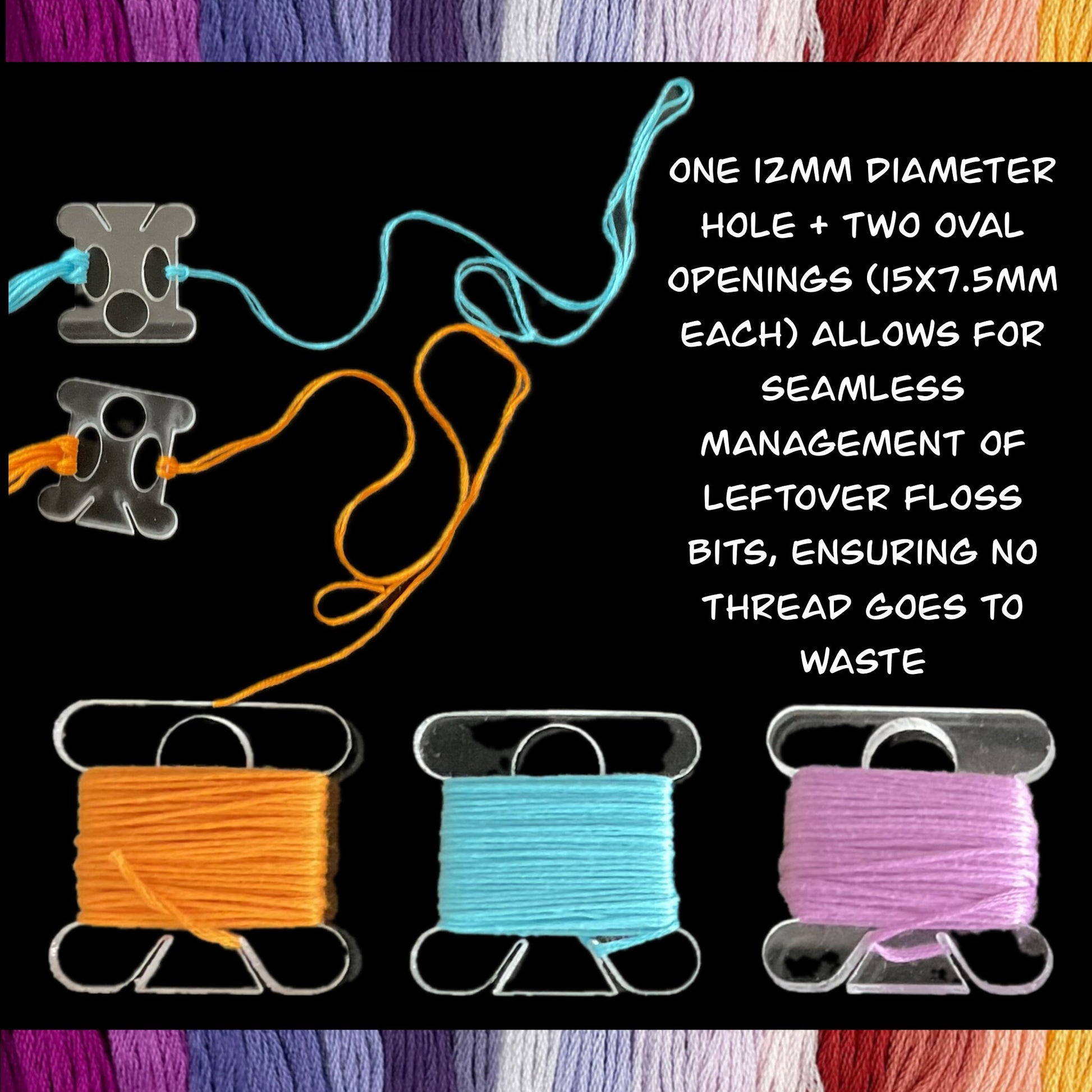 🛠️ Enhanced Functionality: Features a large round opening for easy storage on rings and two oval openings for securing long floss pieces or leftover bits.