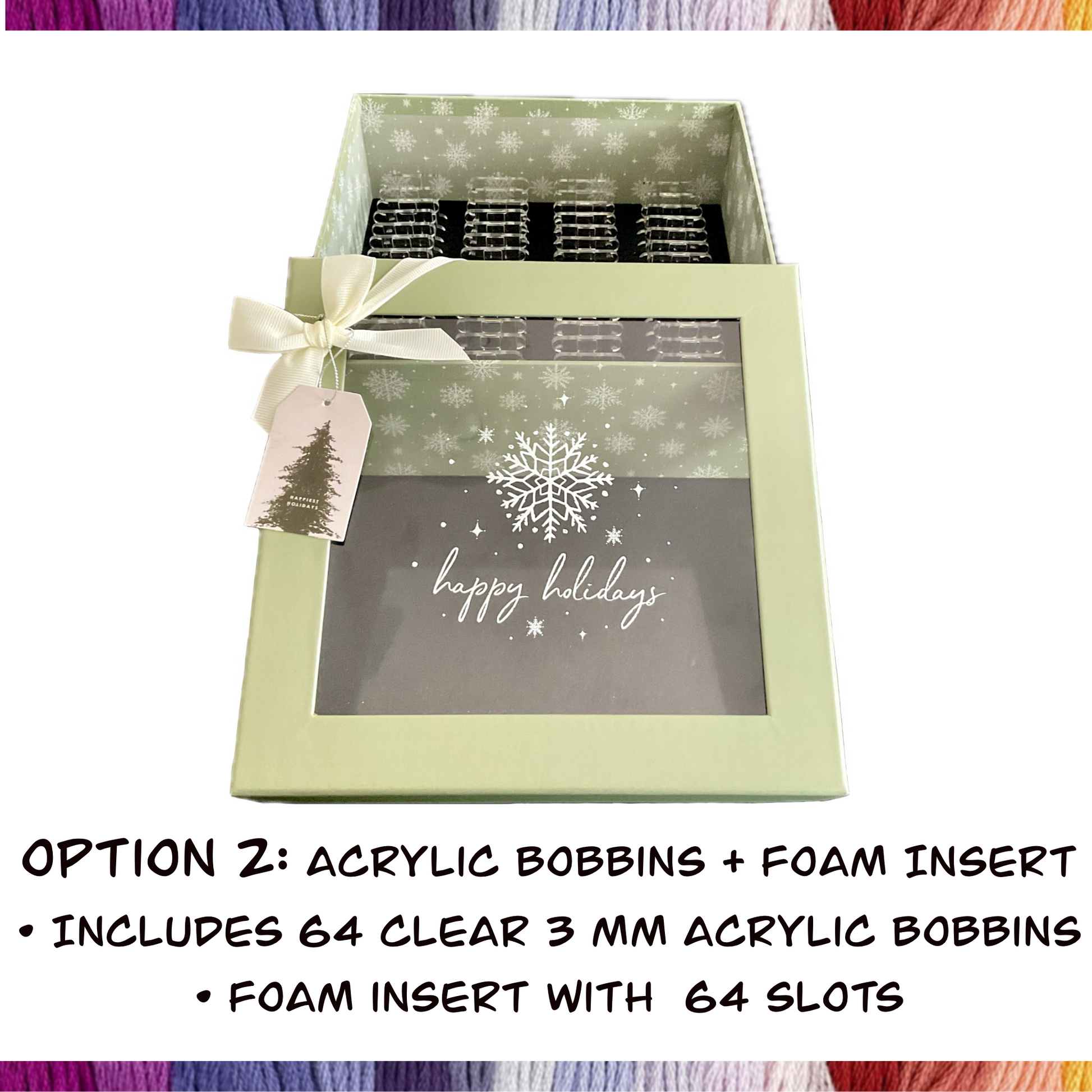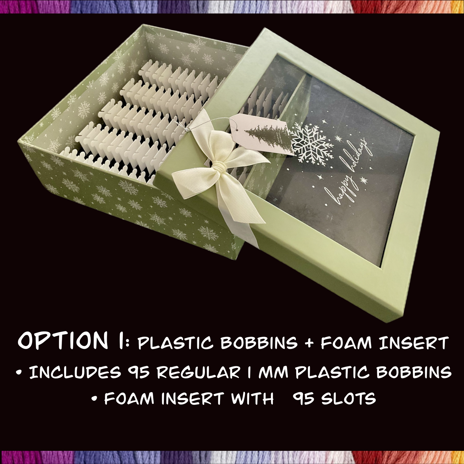 đ Holiday Floss Bobbin Box â 95 Plastic or 64 Acrylic Bobbins Included â Winter Storage & Gift for Cross-Stitch Lovers đ