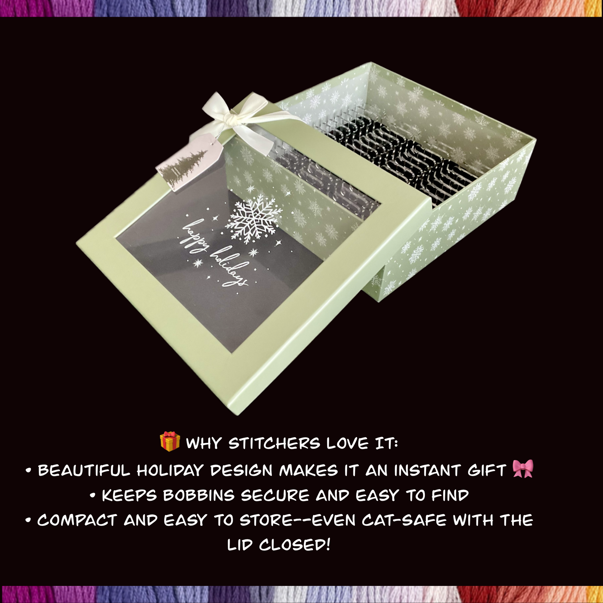 Whether youâre prepping for a winter stitching project or gifting your favorite stitcher early this year (hello, Christmas in July!)âthis festive Holiday Floss Bobbin Box is here to help you organize, store, and smile all season long! âď¸đ§ľ