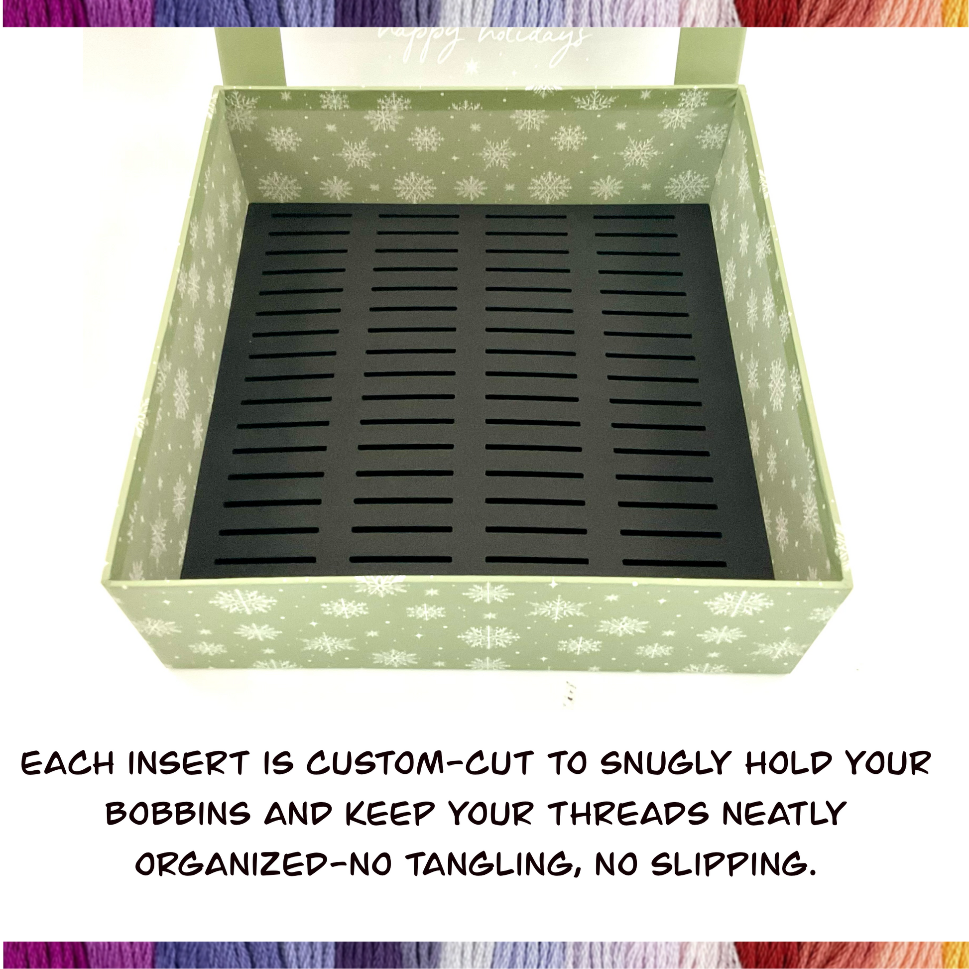 đĄ Each insert is custom-cut to snugly hold your bobbins and keep your threads neatly organizedâno tangling, no slipping.