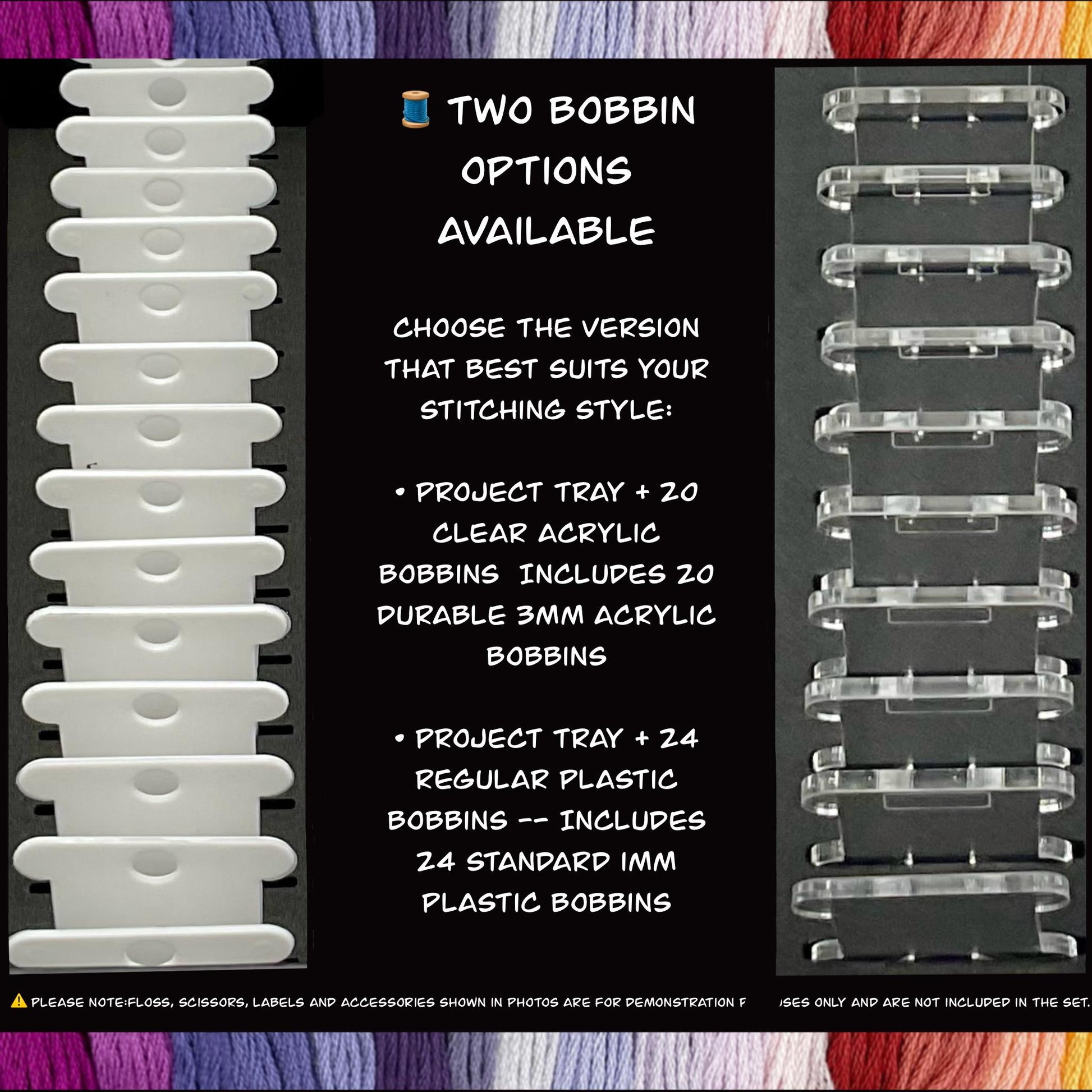 • Project Tray + 24 Regular Plastic Bobbins – Includes 24 standard 1mm plastic bobbins, ideal for classic floss organization.