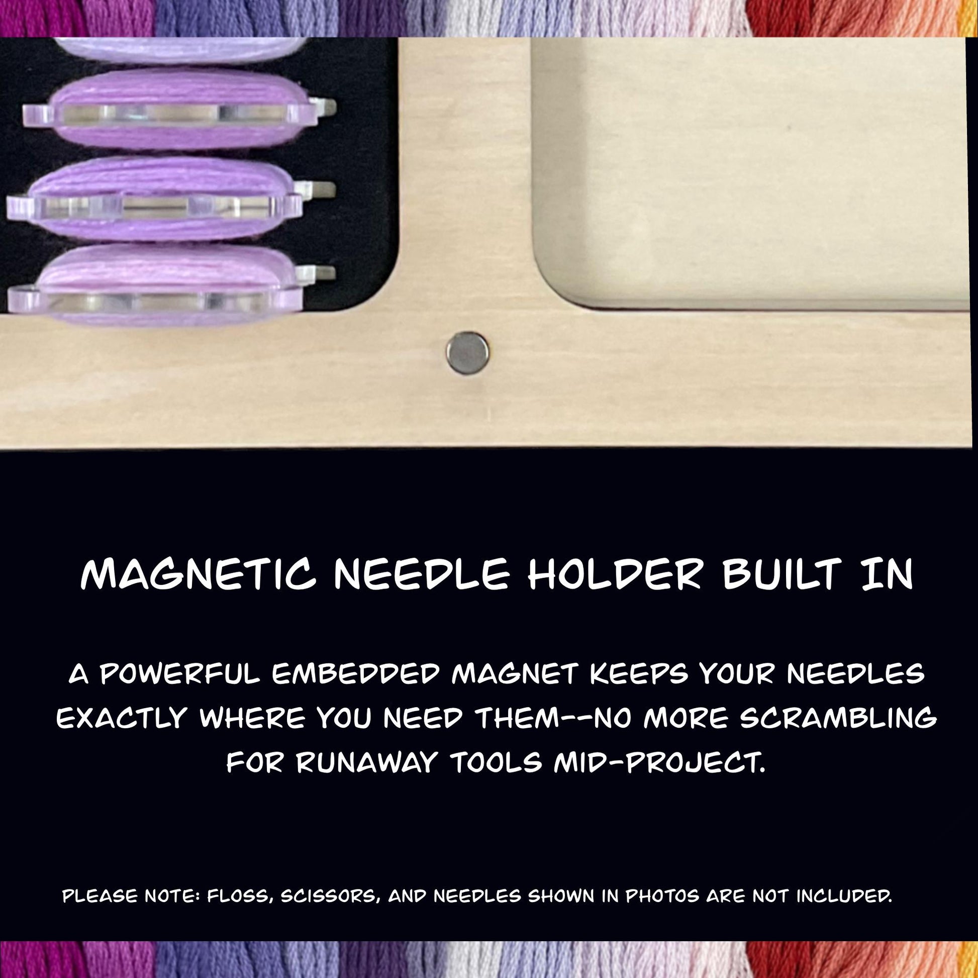 A powerful embedded magnet keeps your needles exactly where you need them—no more scrambling for runaway tools mid-project.