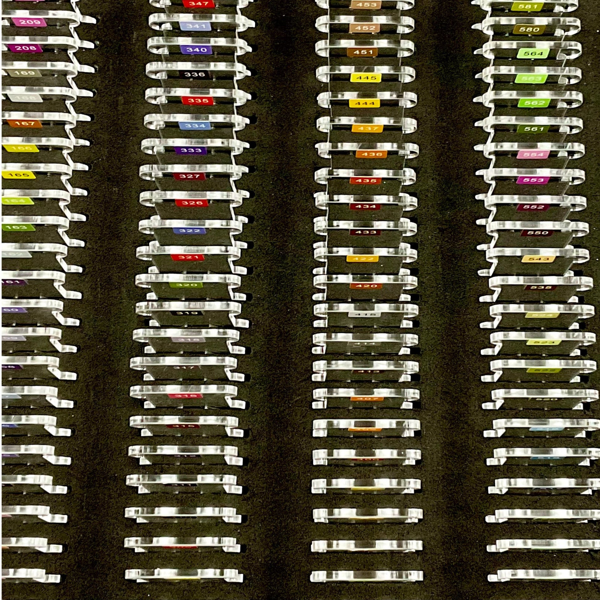 Are you tired of tangled threads and messy floss? Introducing our Deluxe 3mm Acrylic Bobbins Set, now with 490 pre-labeled bobbins, including 447 current DMC colors, new colors 1-35, and 8 discontinued/retired DMC colors. This set is the ultimate solution for organizing your threads and ensuring they’re always accessible and tangle-free!