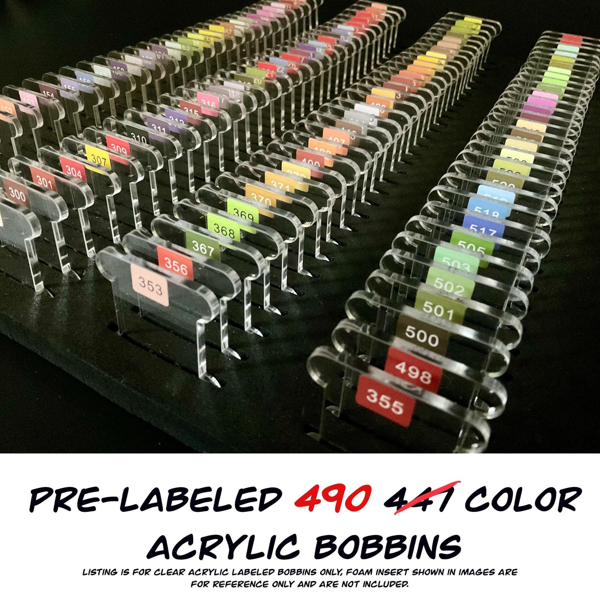 Pre-Labeled 490 Color Acrylic Bobbins:Perfect Gift for Cross-Stitch & Embroidery,490 Prelabeled Acrylic Bobbins-Durable 3mm Set Best Present
