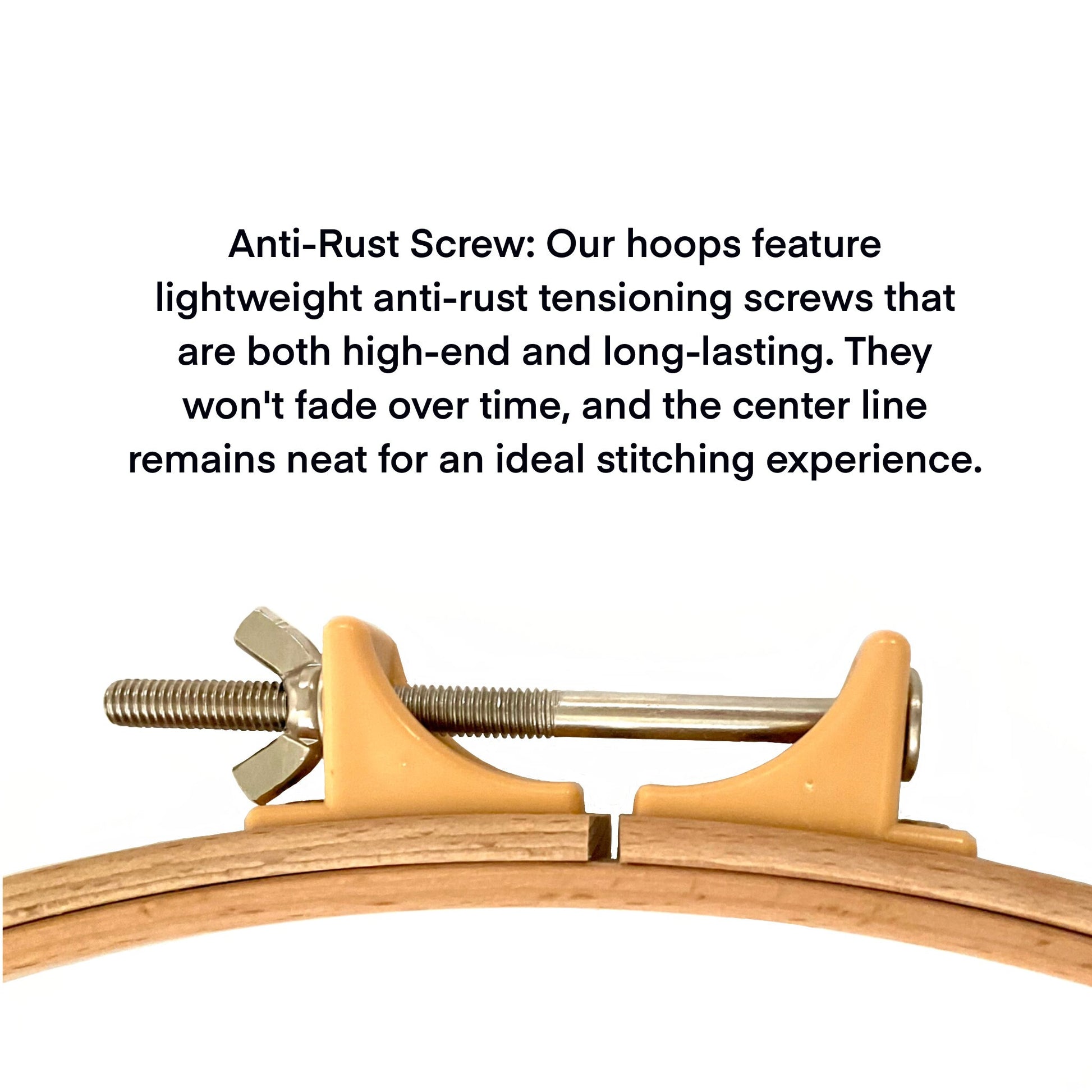 Anti-Rust Screw: Our hoops feature lightweight anti-rust tensioning screws that are both high-end and long-lasting. They won't fade over time, and the center line remains neat for an ideal stitching experience.