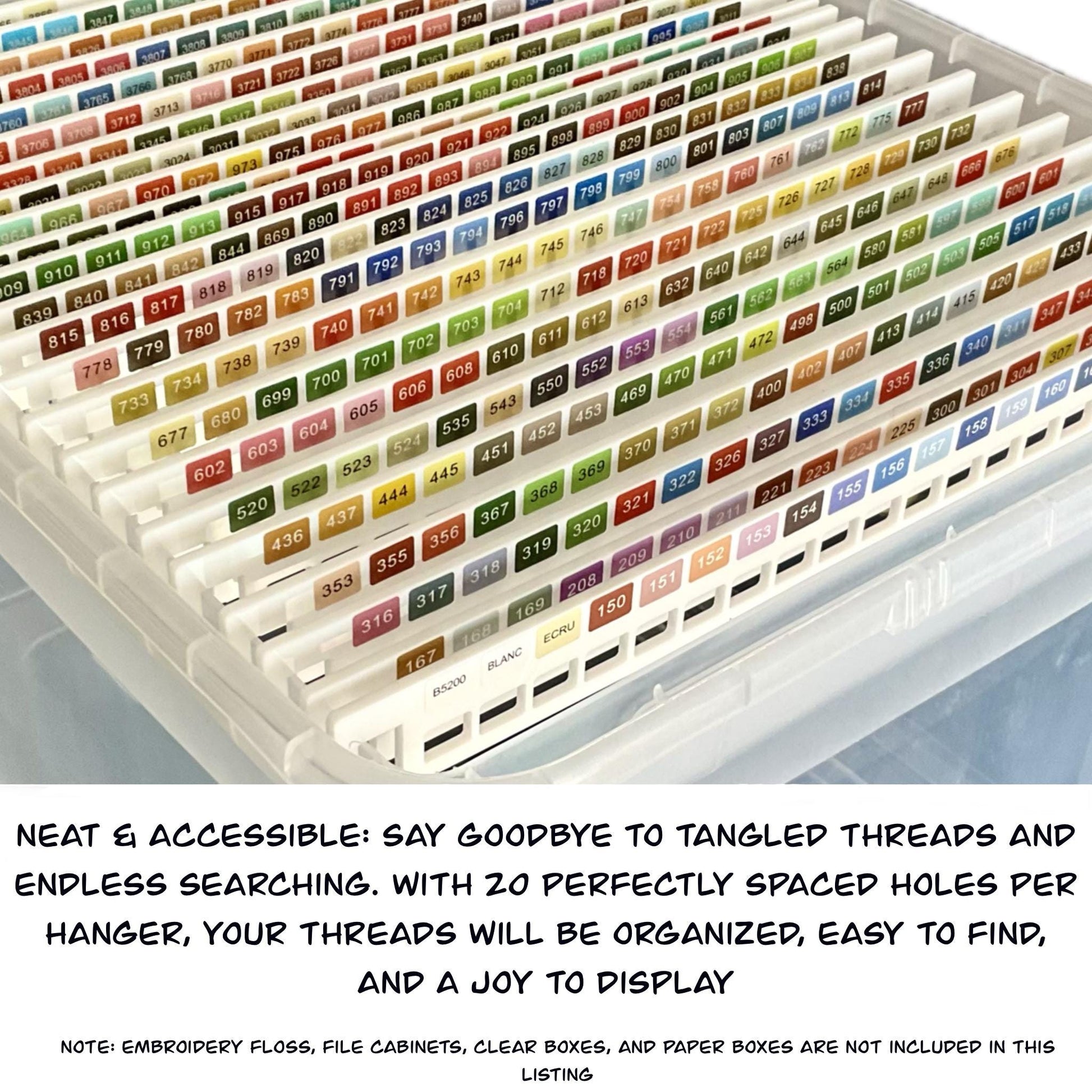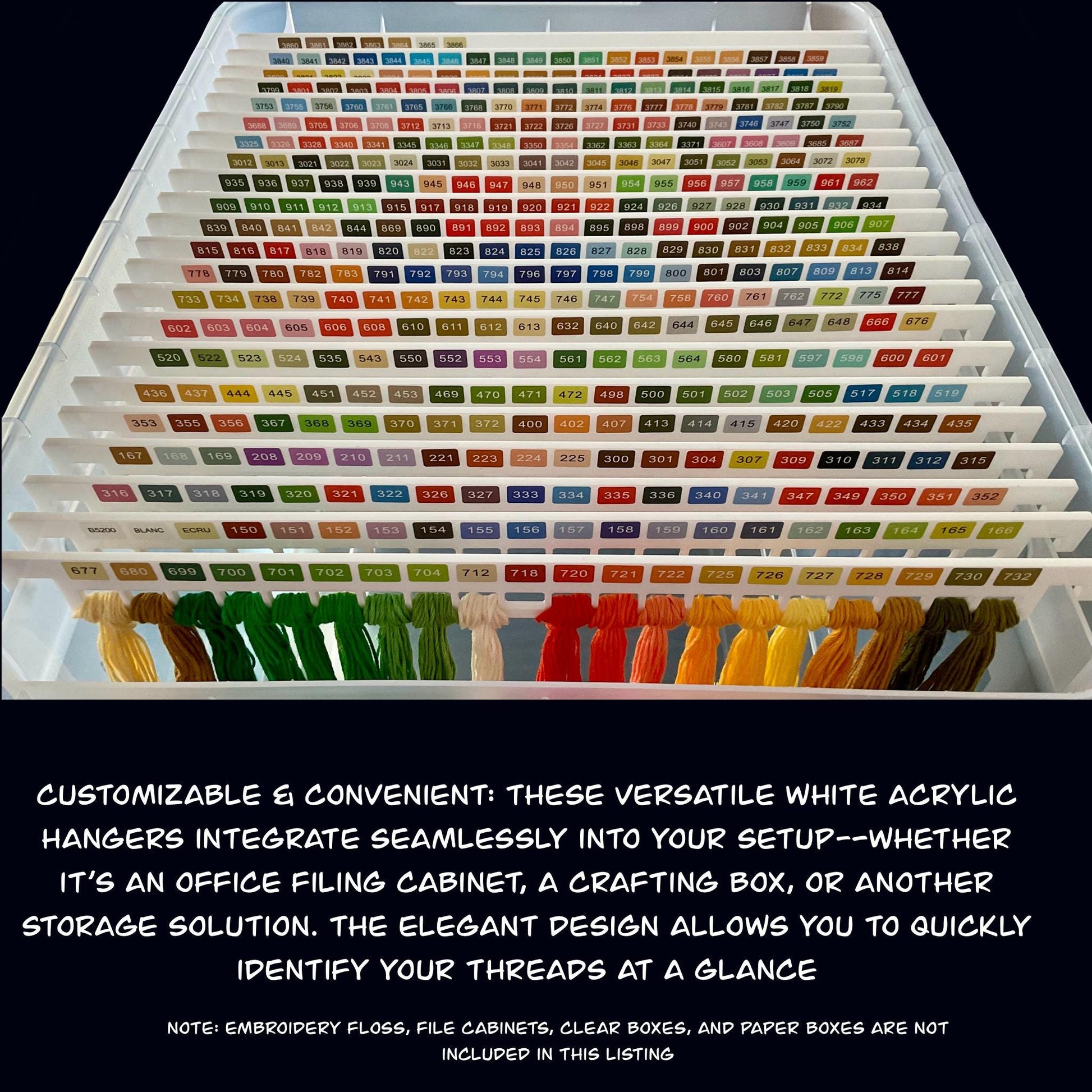 ✨ Customizable & Convenient: These versatile white acrylic hangers integrate seamlessly into your setup—whether it’s an office filing cabinet, a crafting box, or another storage solution. The elegant design allows you to quickly identify your threads at a glance.