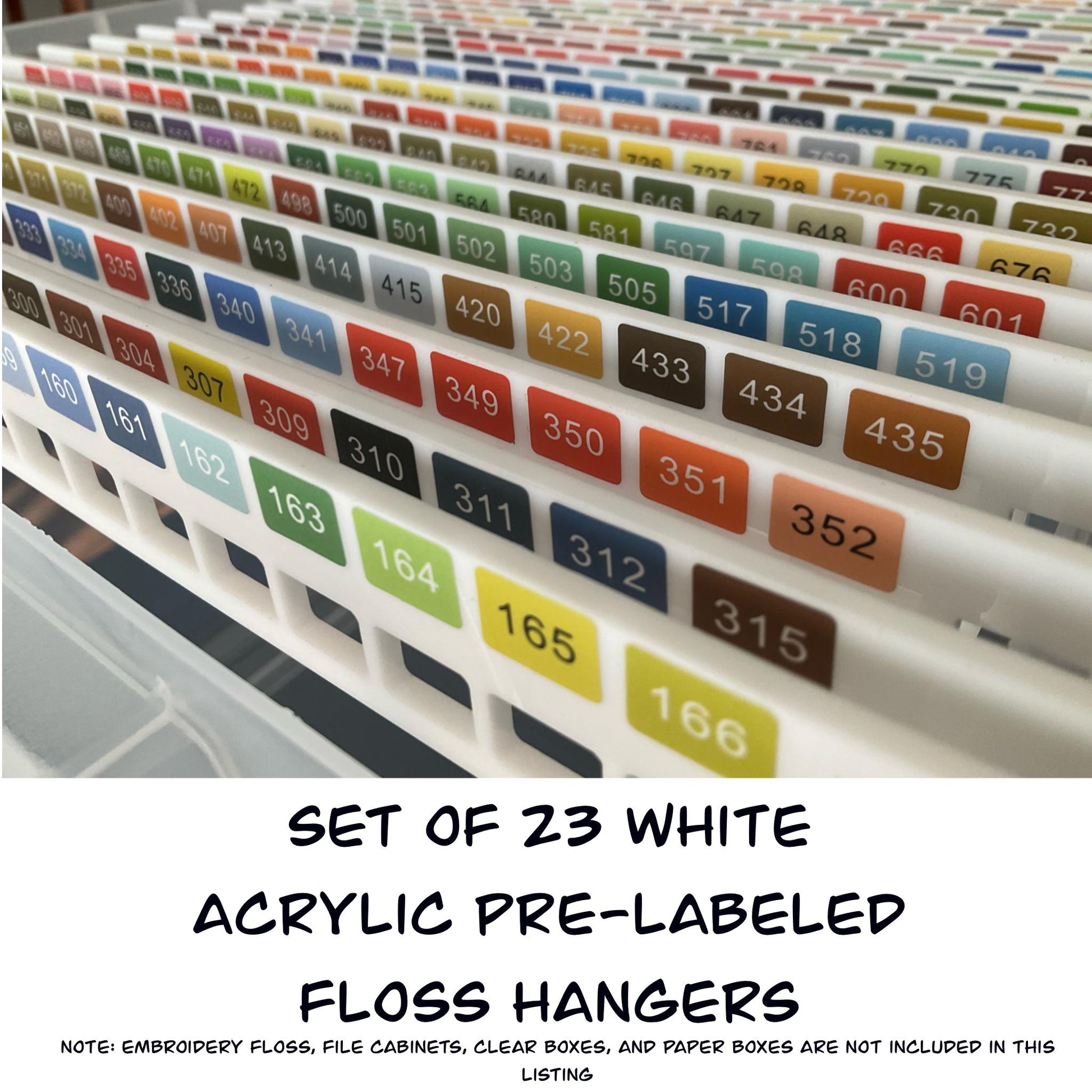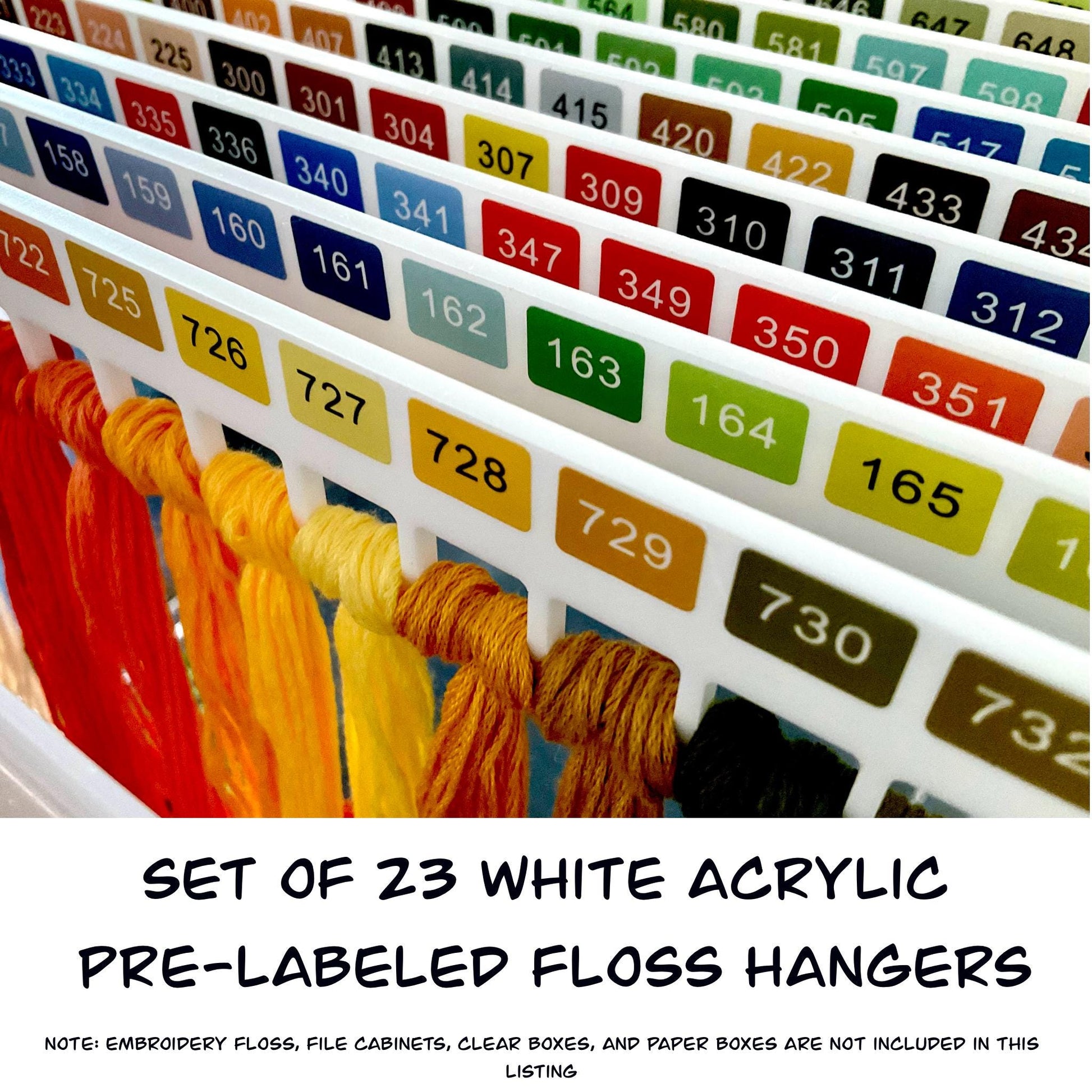 Set of 23 White Acrylic Pre-Labeled Floss Hangers for 447 DMC Colors–Perfect Present for Cross Stitchers, Gift Thread Hangers, Foss Storage
