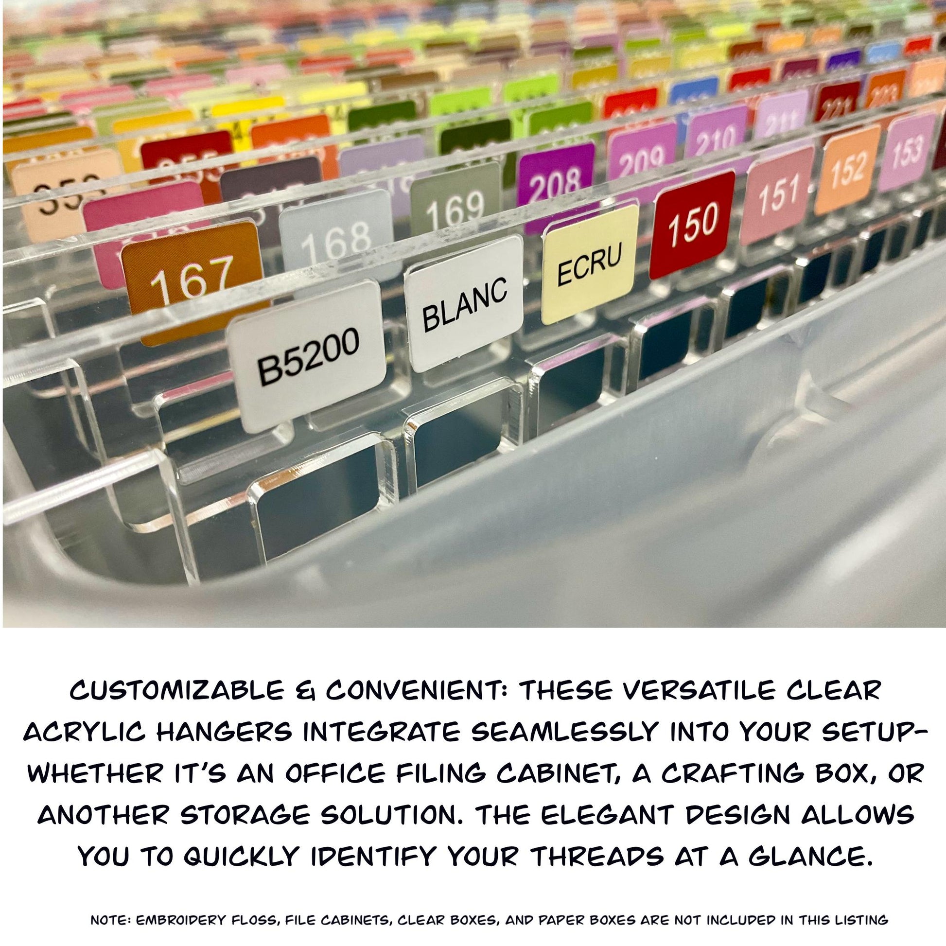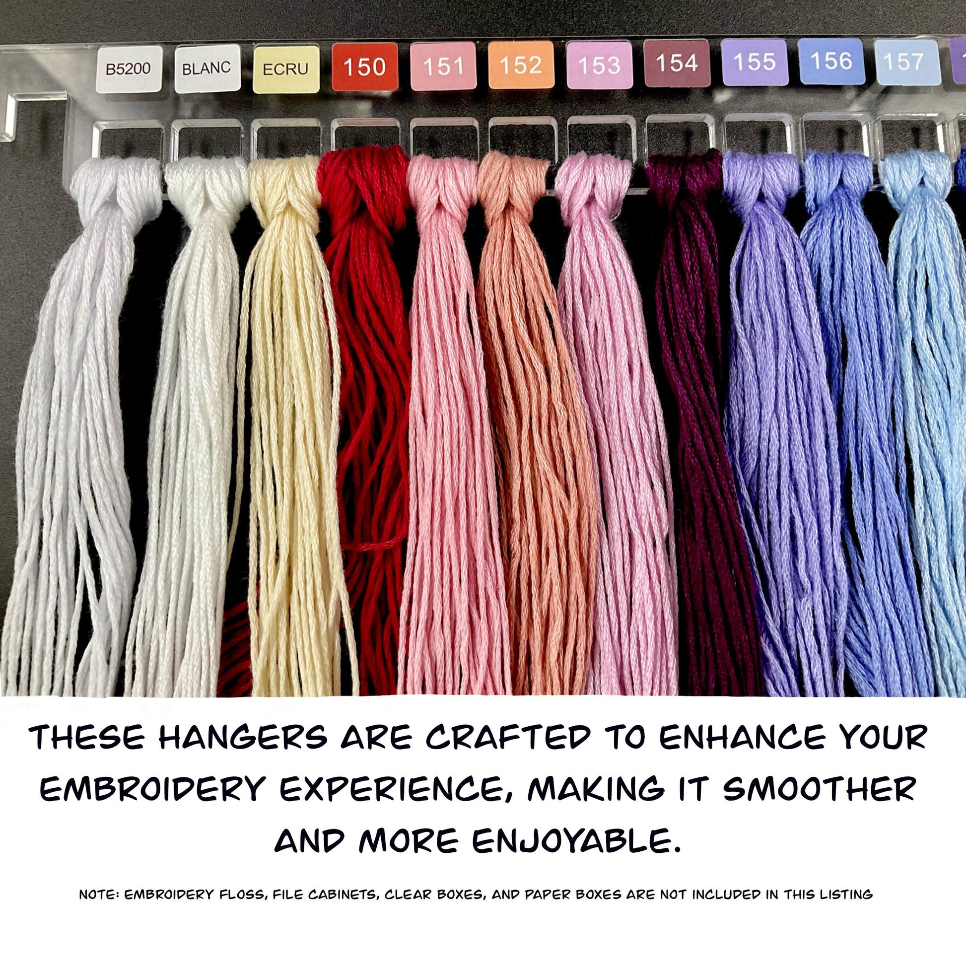 🔄 Customizable & Convenient: These hangers fit seamlessly into your existing craft storage system—whether it's a file cabinet, craft box, or storage tote. The sleek, clear acrylic design allows for quick identification and easy access to your threads.