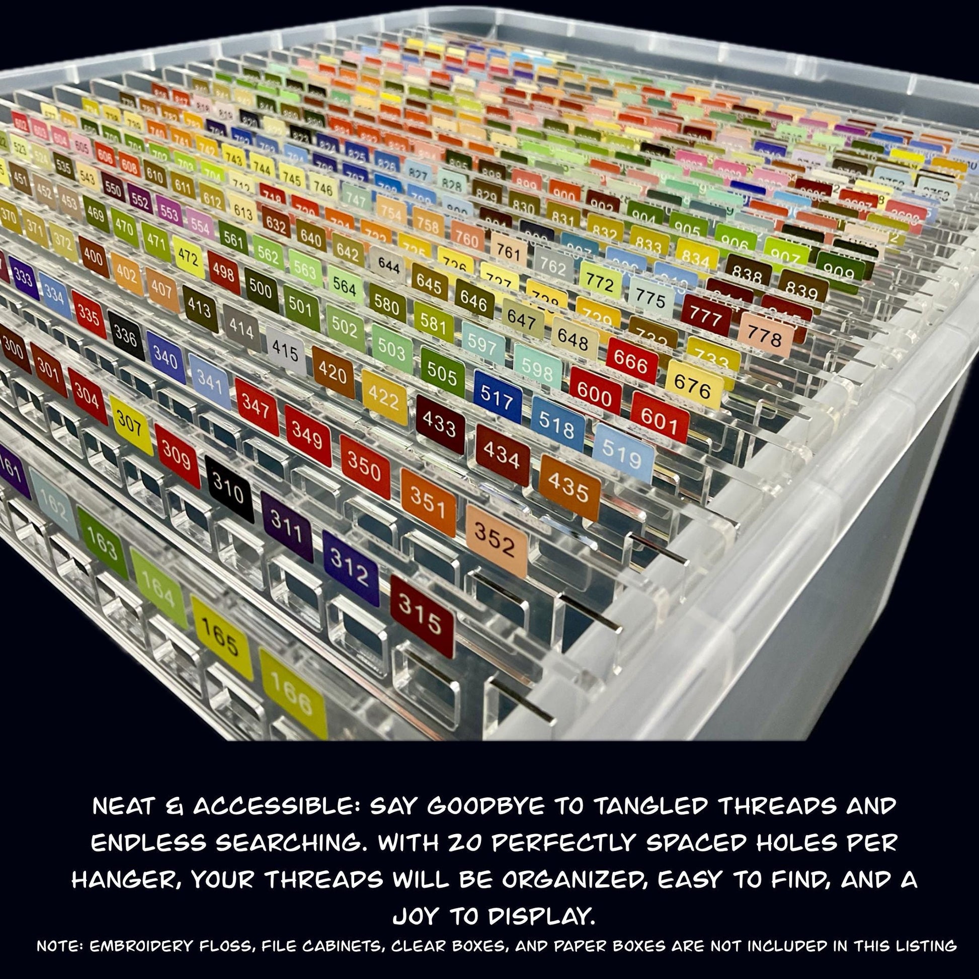 ✨ Efficient Thread Organization: Keep your threads tangle-free and easy to find! Each hanger holds up to 20 threads, and the clear acrylic design makes it easy to see each color at a glance.