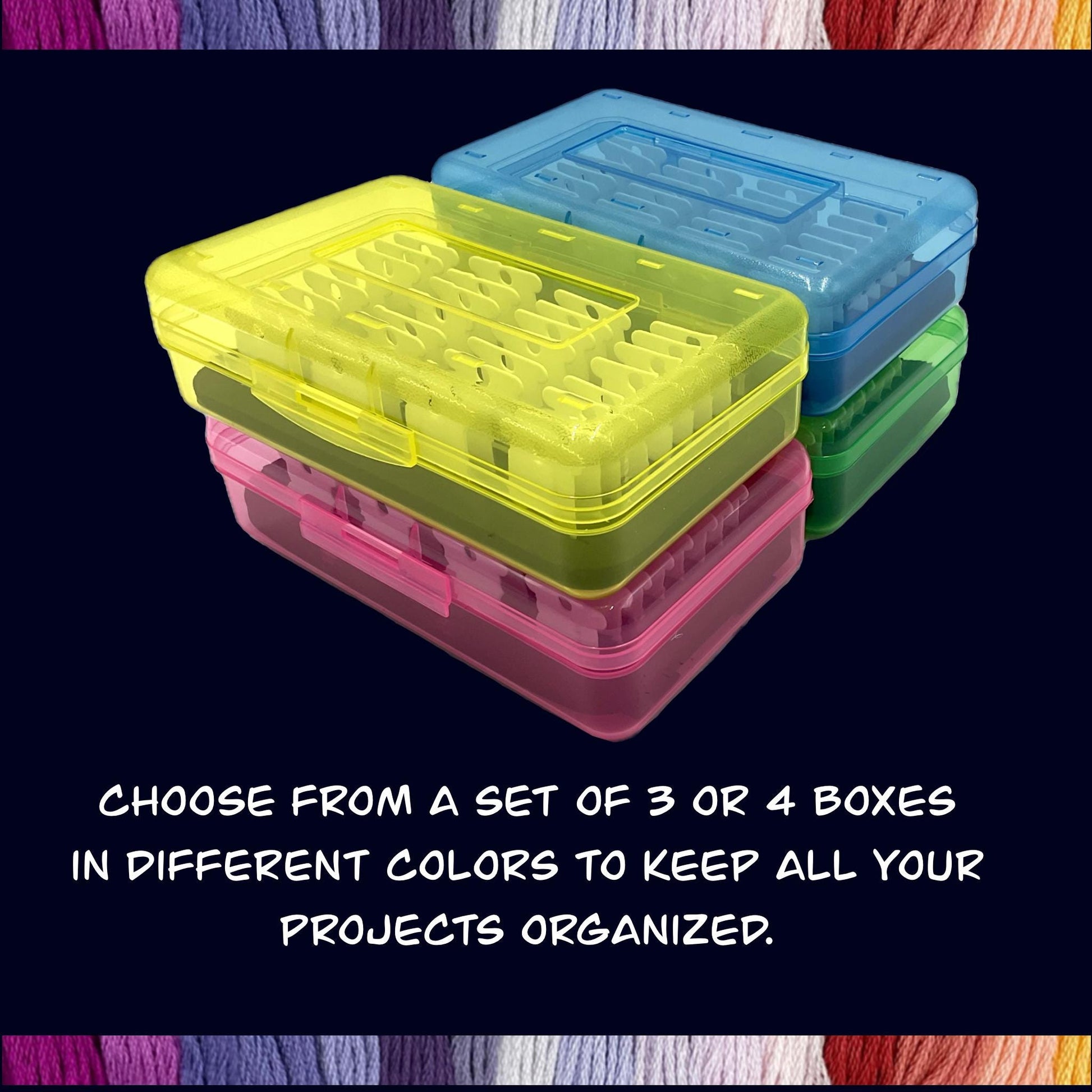 Choose from a set of 3 or 4 boxes in different colors to keep all your projects organized. The set is ideal for those who like to separate threads by project or color! 💼