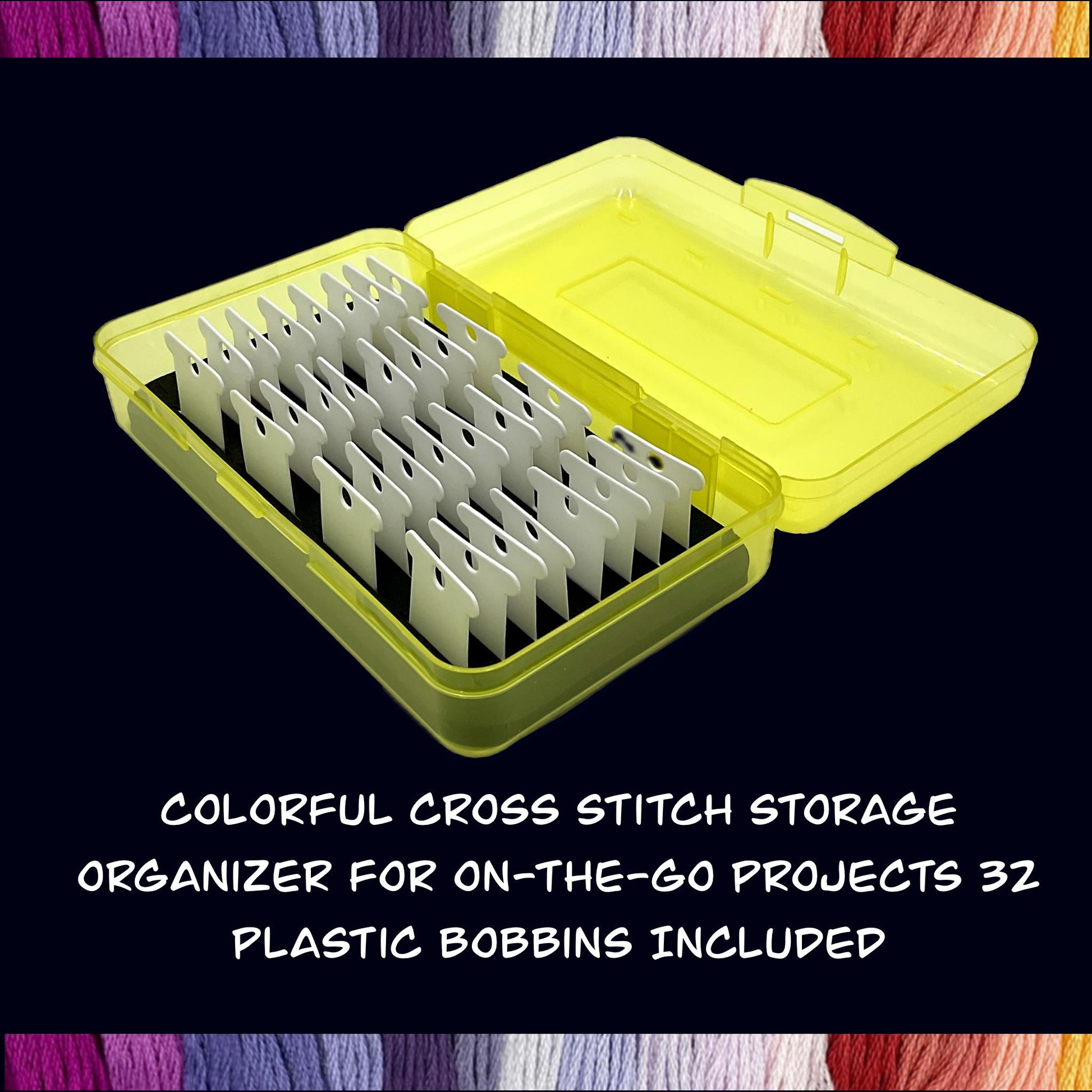 Travel Floss Bobbin Box Set with Foam Inserts–Colorful Cross Stitch Storage Organizer for On-the-Go Projects 96-128 Plastic Bobbins Included