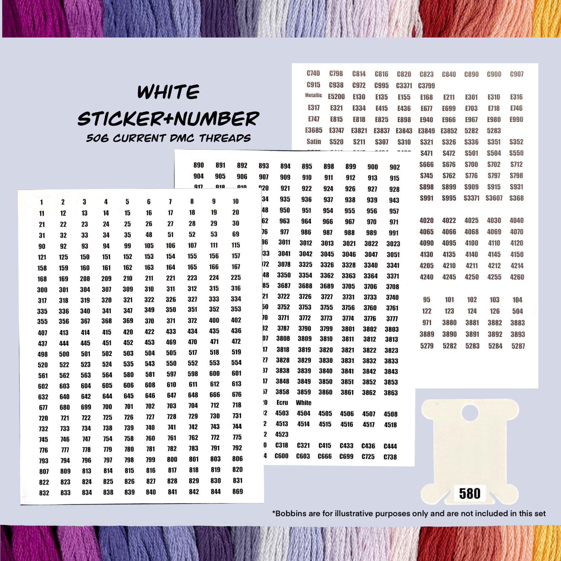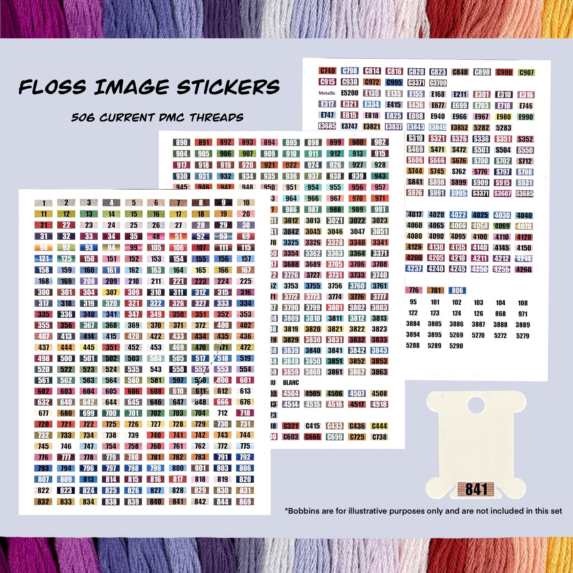 Ultimate DMC Floss Labels Collection. DMC Cotton Floss Waterproof Stickers.Floss Bobbin Stickers.White, Solid Color and Floss Image Stickers