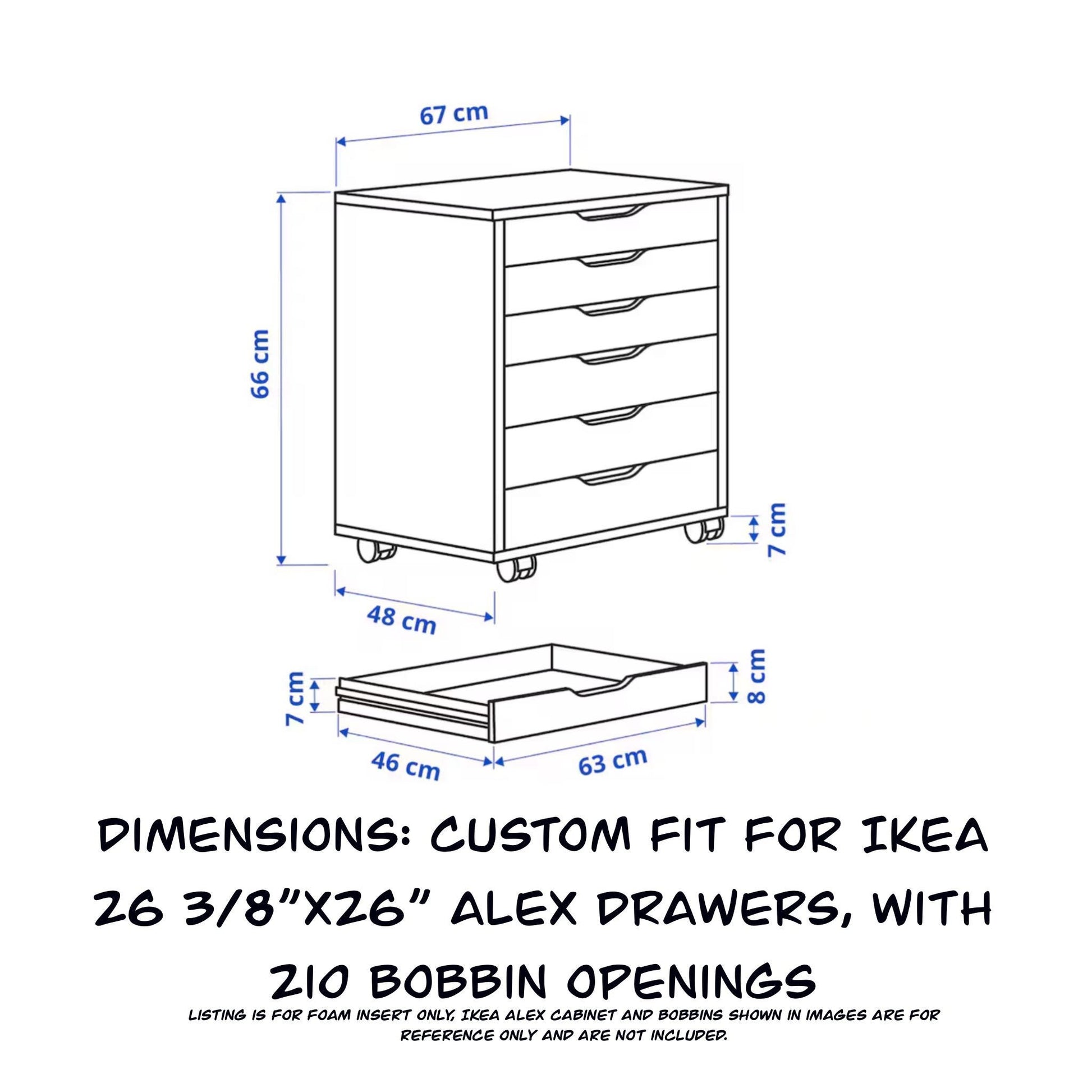 Note: Listing is for the foam insert only. IKEA Alex cabinet and bobbins shown in images are for display purposes and are not included.